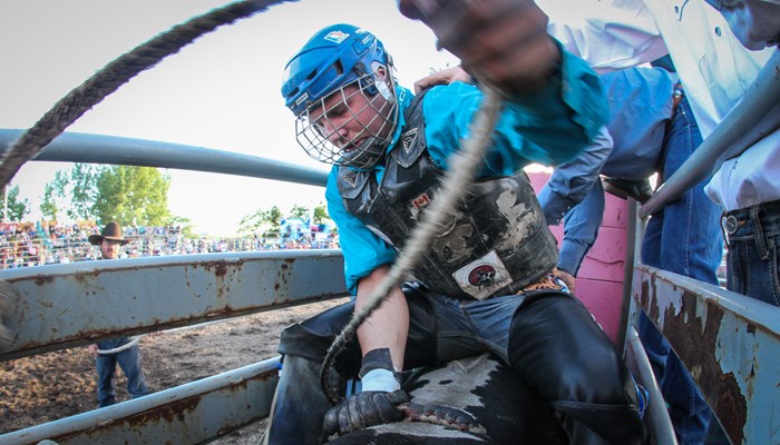 Jackson Scott prepares to ride a bull in the summer of 2016. Photo by Covy Moore.