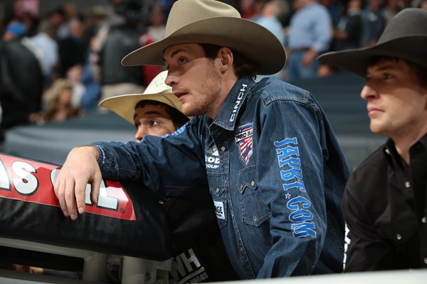 Tanner Byrne looks on during the first round of the 2016 Built Ford Tough series PBR World Finals. Photo by Andy Watson