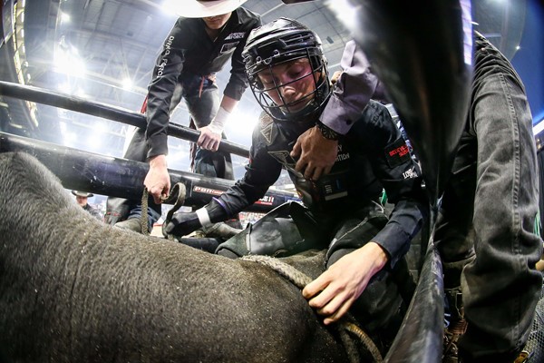 Coy Robbins prepares to compete at his first PBR Monster Energy Canadian Finals. Photo: Covy Moore/CovyMoore.com