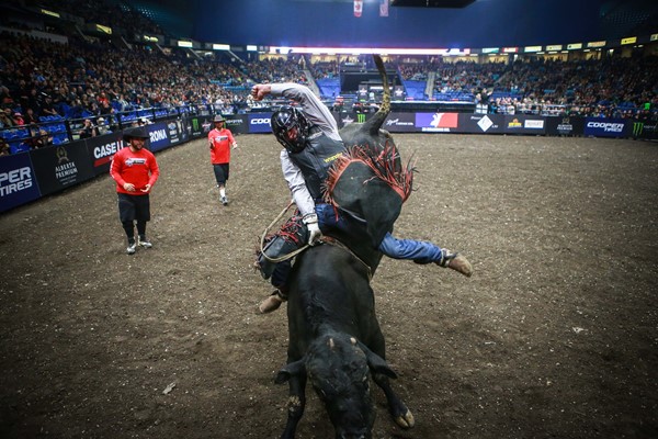 In sports, a called shot is rare, and at the 2017 PBR Canada Finals in happened when Zane Lambert squared off against Crooked Nose. Photo: Covy Moore/CovyMoore.com.