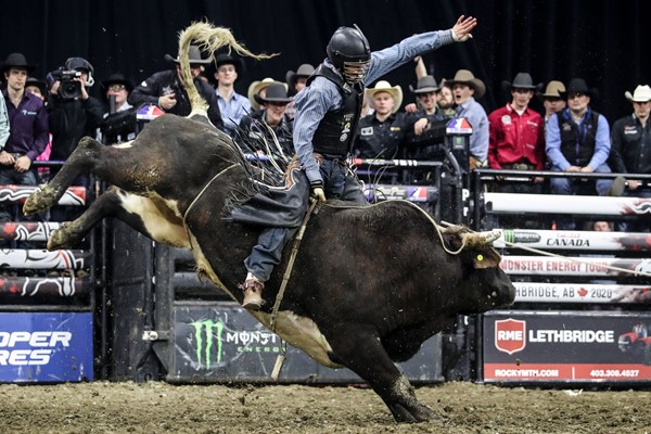 Prior to the 2020 stop in Lethbridge, Garret Green had won PBR events in the city twice. Photo: Covy Moore/CovyMoore.com.