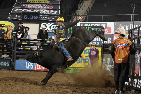 Bucking Fantastic was the first bull from Two Bit Bucking Bulls to reach the PBR World Finals in Las Vegas. Photo: Andy Watson/Bull Stock Media.