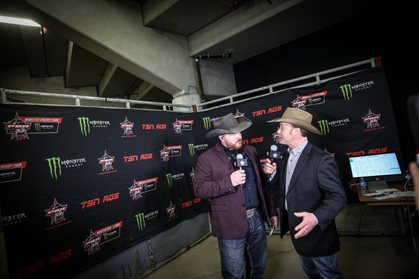 Let’s talk about the PBR Canada Monster Energy Tour in particular. I have to say one of the really nice things from an announcing standpoint is that on tour we see a lot of the same competitors at each event, both bulls and riders. So, from a “homework” standpoint there is probably only a few hours that will go into every performance because a lot of the major statistics won’t change. So, the majority of that time is spent updating current standings, getting bull stats and making sure we know what has happened most recently. As a team we are always trying to dig for those cool little stories that the audience may connect with. But what time the tour allows us in consideration of homework, it takes up in production.