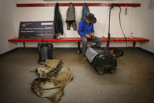 Lakevold is young in his PBR career but has the respect of an entire dressing room of bull riders. This image was captured shortly after he arrived with his father, Darcy. Lethbridge, traditionally, is the event in which this community catches us. Often it’s the season opener, and this past year was no exception.