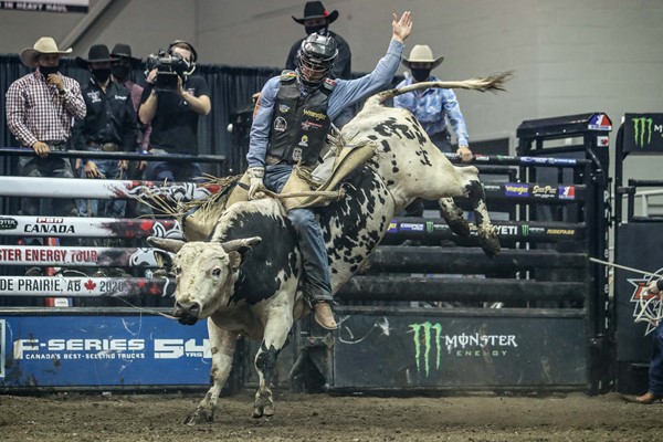Three-time PBR Canada Champion Aaron Roy concluded 2020 ranked No. 8 in PBR Canada competition. Photo: Covy Moore/CovyMoore.com.