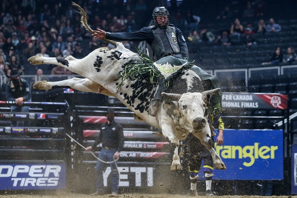 This is a bull that spent a lot of time in the U.S. and they’ve got him back up in Canada now, Nansen Vold packing him again. Fabian Dueck rode this bull in Kinsella the other week and looks like one you want to get on. Dakota Buttar coming off the Calgary Stampede Championship, has all the confidence in the world. Always one of our top guys, kind of had a slow start to the season. But you kind of see that with Calgary, you have a good Calgary, and you can rip that second half. Look for Dakota to step up now and try to get in position to win another Canadian Championship. And this is a great bull for him to start that on.
