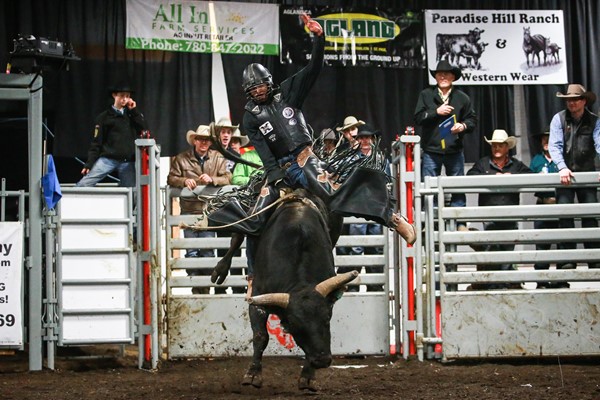 Cadogan, AB's Lonnie West put up the top score in round one, 86 points on Finning Deja Voodoo from Flying Four Bucking Bulls. West wouldn't connect in the finals however to finish in the third spot and take over the number one spot in the PBR Canada National Standings.