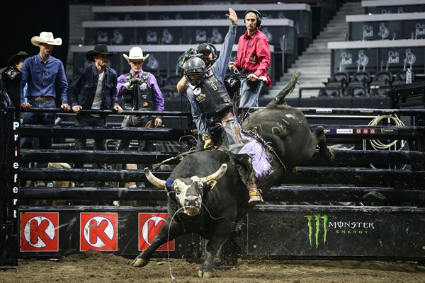 On Friday night, in Round 1, the 19-year-old rode Dylan’s Devil (Wild Hoggs) for 84 points, which he followed with an 87-point score on Blow Me Away (Vold Rodeo) in the championship round.