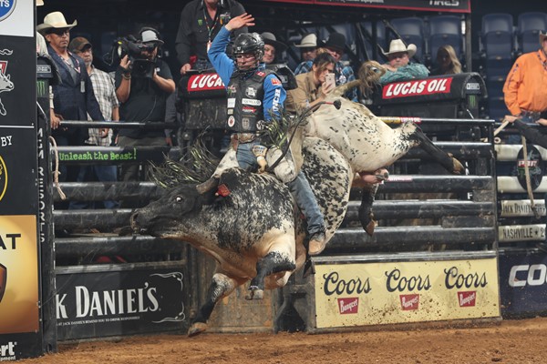 Bringing the raucous crowd inside Bridgestone Arena to its feet, young gun Dalton Kasel (Muleshoe, Texas) made a splash competing in his first-ever PBR Major, winning Round 1 of the Jack Daniel’s Music City Knockout, presented by Cooper Tires.