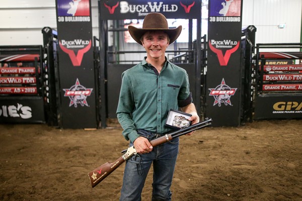 GRANDE PRAIRIE, Alberta – At the first-ever PBR (Professional Bull Riders) Canada event in Grande Prairie, Alberta, Thor Hoefer II (Priest River, Idaho) went a perfect 2-for-2 to win the Grande Prairie Buckwild PBR inside Evergreen Park.