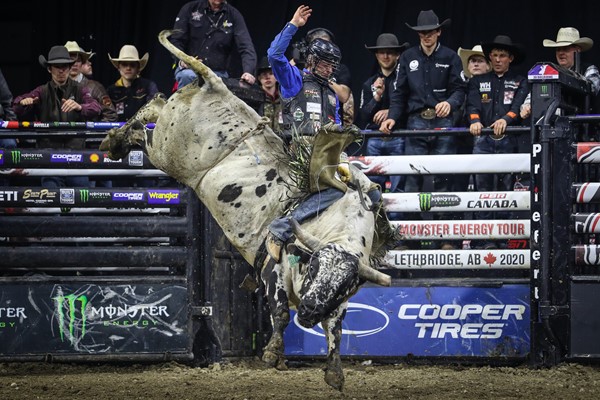 LETHBRIDGE, Alberta – In front of a sold-out, Saturday-night crowd inside the ENMAX Centre, Dakota Buttar (Kindersley, Saskatchewan) continued his flawless 2020 season, delivering a perfect 3-for-3 performance to win the PBR (Professional Bull Riders) Canada Monster Energy Tour’s South Country Co-op Showdown in Lethbridge, Alberta.