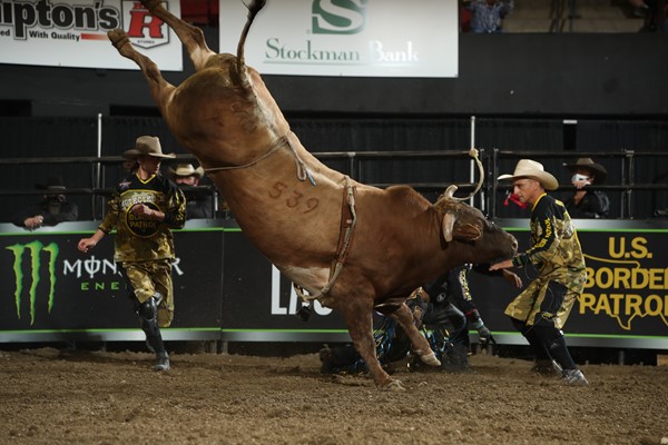 The bull first posted the score in Chicago in January, compliments of his 2-second trip with Ezekiel Mitchell (Rockdale, Texas), again bucking to the head-turning score in Bismarck, North Dakota, in August when he bucked off 2018 PBR World Finals event winner Marco Eguchi (Poa, Brazil) in 5.87 seconds.