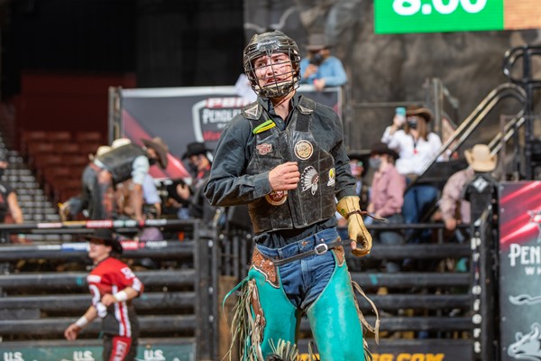 The 22-year-old Floridian narrowly advanced to the championship round after tying for 13th in Round 1, riding Home Wrecker (JR Phillips/Clemons) for 84.5 points.