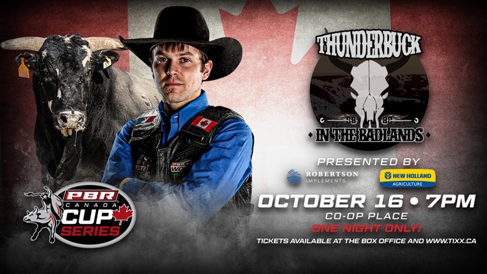 MEDICINE HAT, Alta. – For the first time in league history, PBR (Professional Bull Riders) Canada’s elite Cup Series will buck into Medicine Hat, Alberta, welcoming fans to Co-op Place October 16 for the PBR Thunderbuck in the Badlands, presented by Robertson Implements and New Holland.