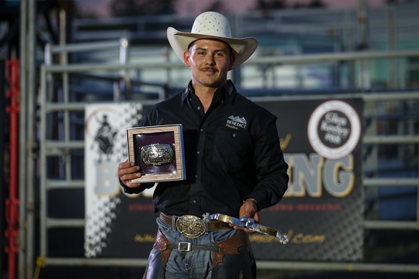 Wyatt Gleeson won the PBR Canada Touring Pro Division event in Stavely, Alberta. Photo: Covy Moore/CovyMoore.com.
