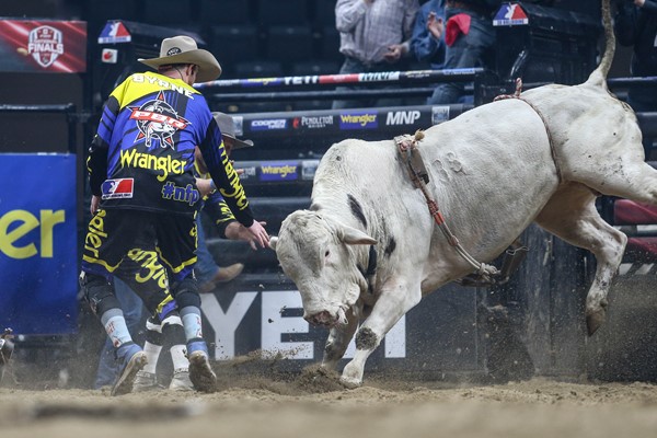 The Saskatchewan contender clinched the title, and his share of the record $175,000 purse paid out at the year-end event, with an impressive 89.5-point ride aboard annual PBR Canada Bull of the Year contender Finning Lil Shorty (Flying Four Bucking Bulls).