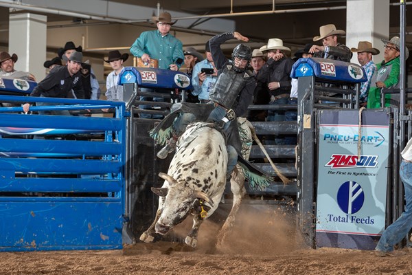 In the bull pen, Smart As A Rock (Wild Hoggs Bucking Bulls) was crowned the Bull of the Event. The bovine athlete delivered the top score of the tour stop in Round 2, marked 44 points after upending Chad Neufeld (Rochester, Alberta) at the 2.41-second mark.