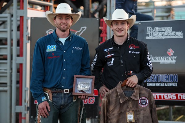 STAVELY, Alta. – As a raucous Saturday night crowd in Stavely, Alberta, watched on, Coy Robbins (Camrose, Alberta) and Jordan Hansen (Amisk, Alberta) rode supreme at the prestigious PBR (Professional Bull Riders) Canada Touring Pro Division event at Stavely Outdoor Arena, tying for the victory at the Glen Keeley Memorial Bull Riding.