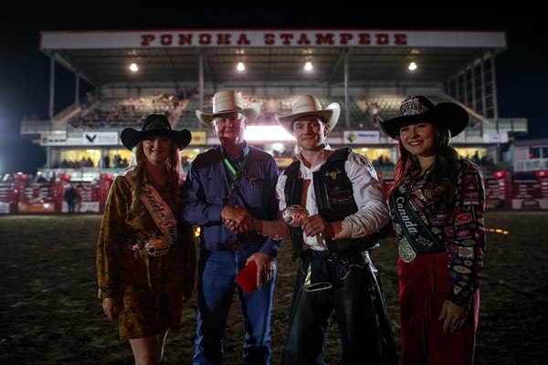 Tied for second on the leaderboard entering the championship round, Tetz then went head-to-head with McGregor (Vold Rodeo). Bursting from the chutes, Tetz remained in perfect time with the powerful animal athlete, reaching the requisite 8 with ease. Marked an event-best 86.5 points, the score cemented the victory for Tetz.