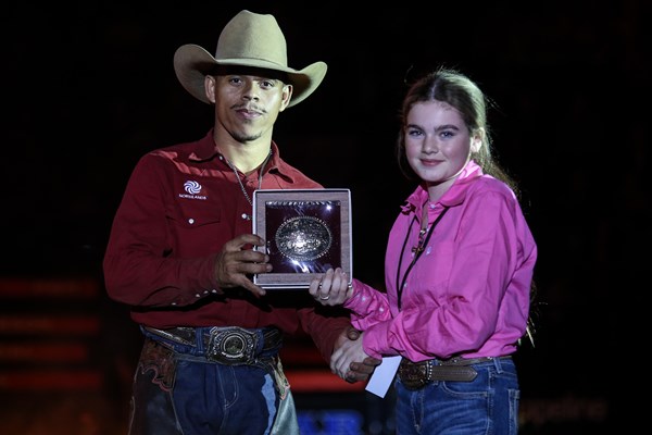 Despite bucking off Rust Bucket (Vold Rodeo) in 5.91 seconds in Round 1, Davidson made the most of his renewed opportunity in the championship round. Drawing Watermelon Sugar Hi (Kinky Buckers), Davidson remained in perfect time with the powerful animal athlete, reaching the requisite 8 with ease for 86.5 points.