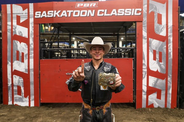 The bull riding prodigy is now a perfect 6-for-6 in his career while competing in Saskatoon.