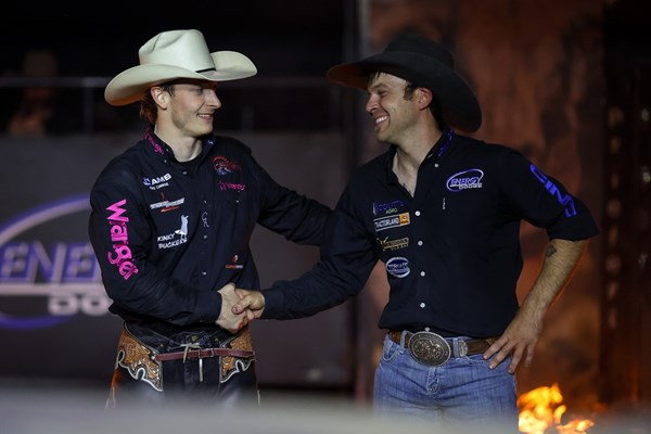 West rode Nasty Breath (Foley Bucking Bulls) for 83 points in Round 1, before going the distance aboard Border Breath (Foley Bucking Bulls) for 83.5 points in the championship round.