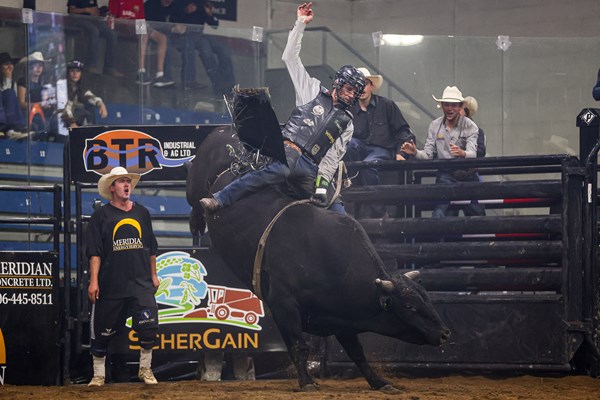 The charismatic British Columbia native first put points on the board in Round 1 when he covered Last Flight Tonight (Skori Bucking Bulls) for 82.5 points. He then delivered his second qualified ride in as many attempts when he rode Patiently Waiting (Skori Bucking Bulls) for 86 points in the final round.